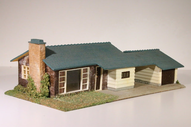 FALLER - H0 - 265 - "Bungalow mit Kamin und freistehender Garage" {Fertigmodell (Holzmodell, aus der frühen Produktion)}